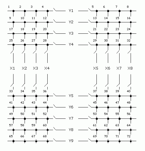 In its standard configuration as a single 8 x 9 matrix sub-unit, when channel selections are made using functions such as: